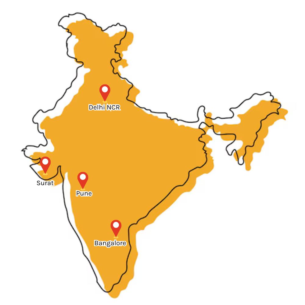 We're based across NCR, Surat, Pune & Bangalore.